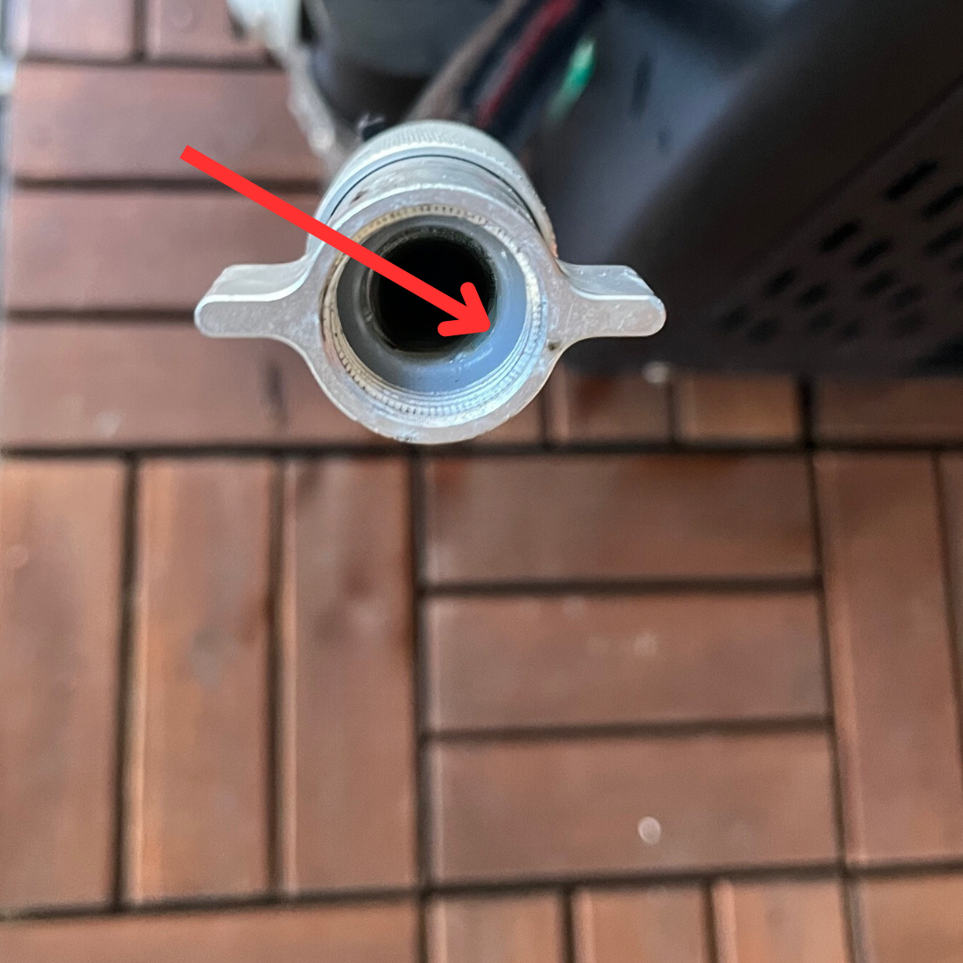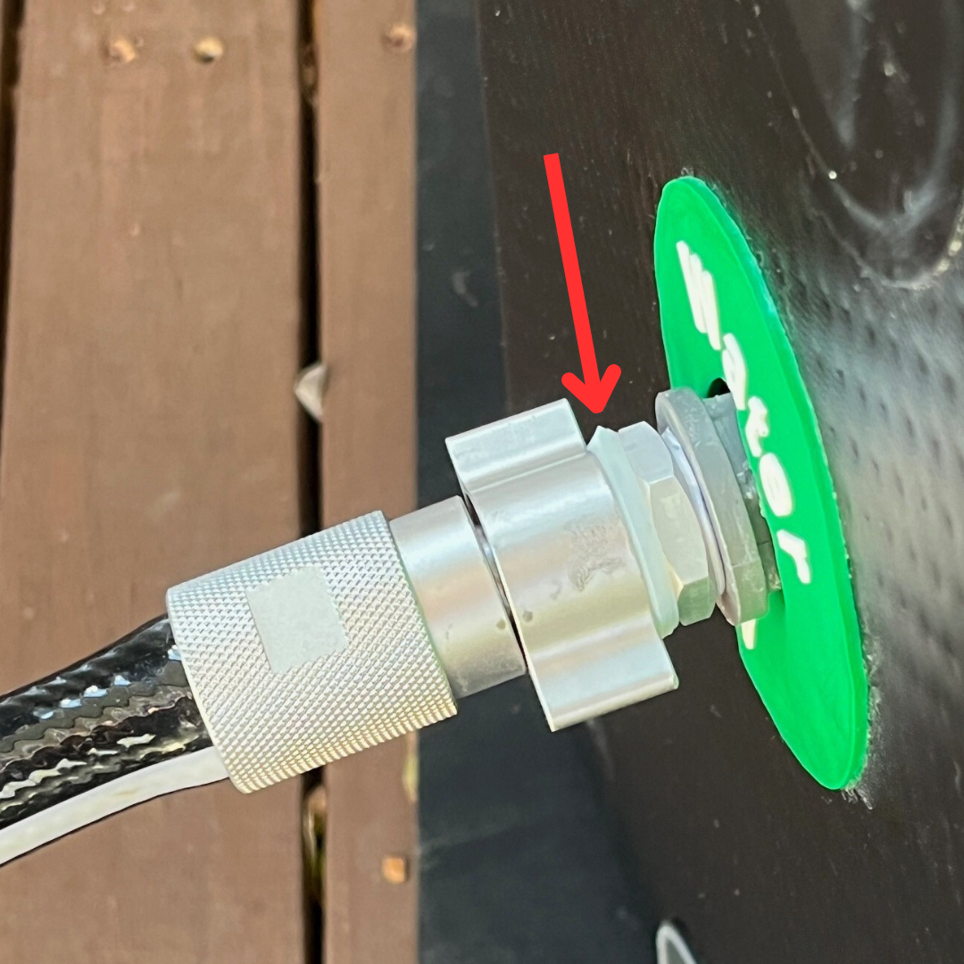 - Screw the black base onto the inlet port until it’s almost hand-tight.